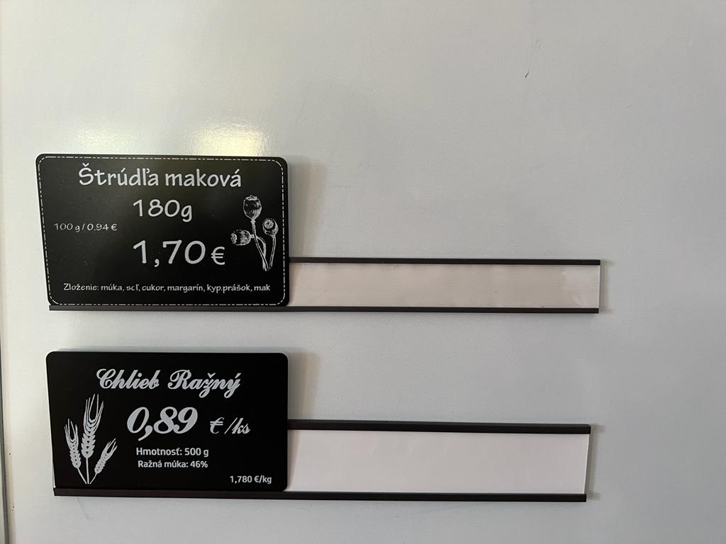 Držiak cenoviek na magnetické pripevnenie. Možné jednoduché priloženie magnetickou časťou ku kovovému pultu. Praktický c-profil pre jednoduché vkladanie a bezpečné držanie cenoviek. Magnetickú lištu je možné rozrezať na požadovanú dĺžku.