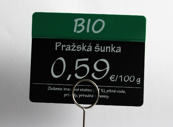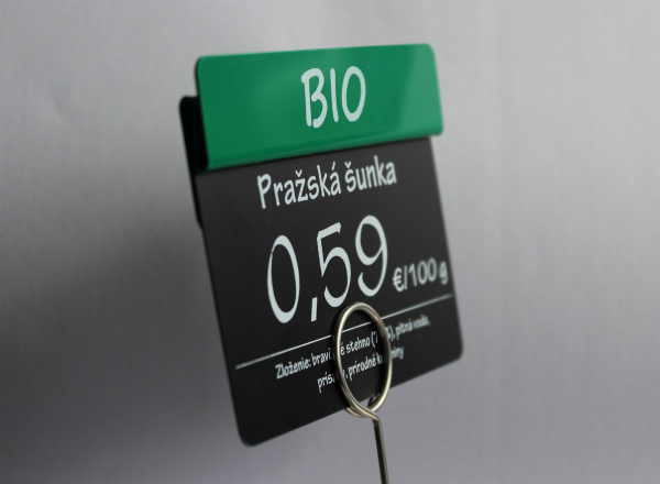 Pre zvýraznenie jednotlivých cenoviek ponúkame ohnuté etikety s popisom: