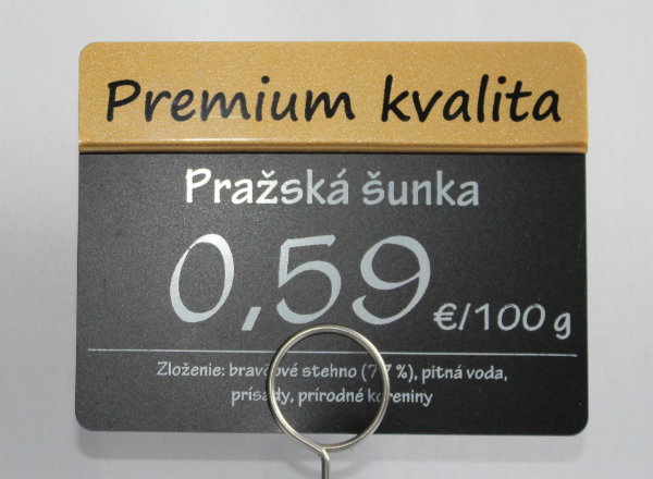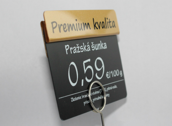 Pre zvýraznenie jednotlivých cenoviek ponúkame ohnuté etikety s popisom: