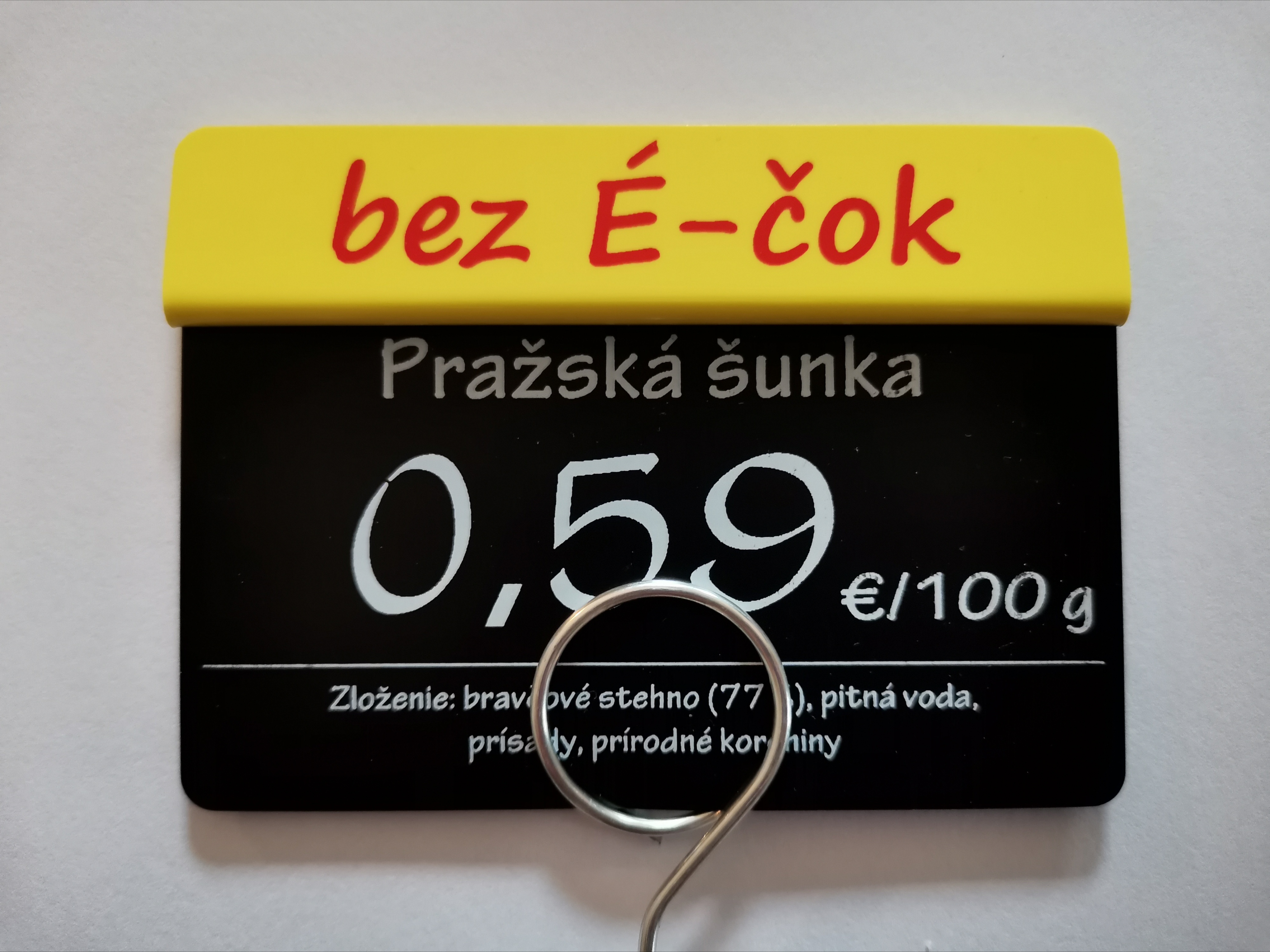 Pre zvýraznenie jednotlivých cenoviek ponúkame ohnuté etikety s popisom:
