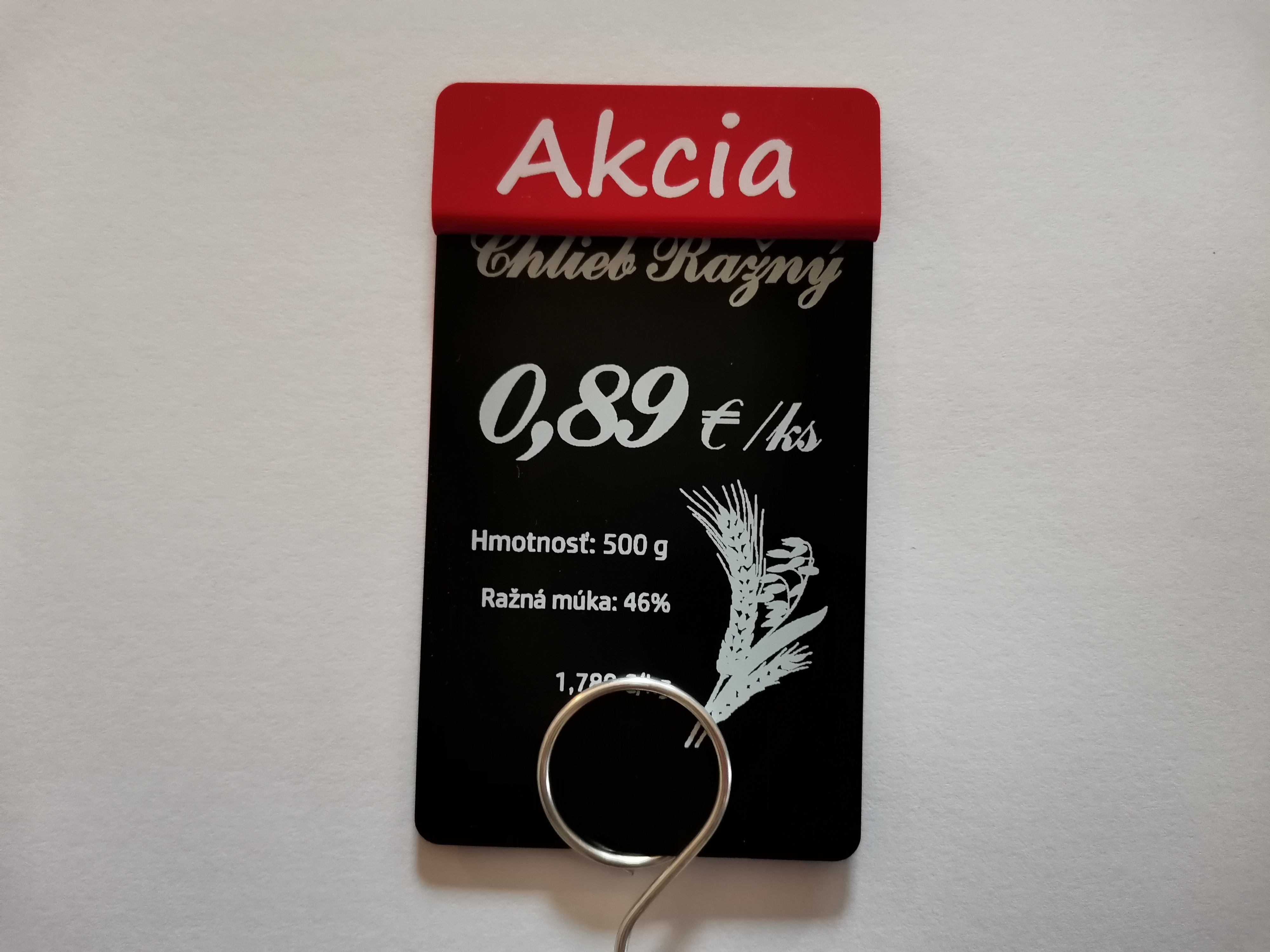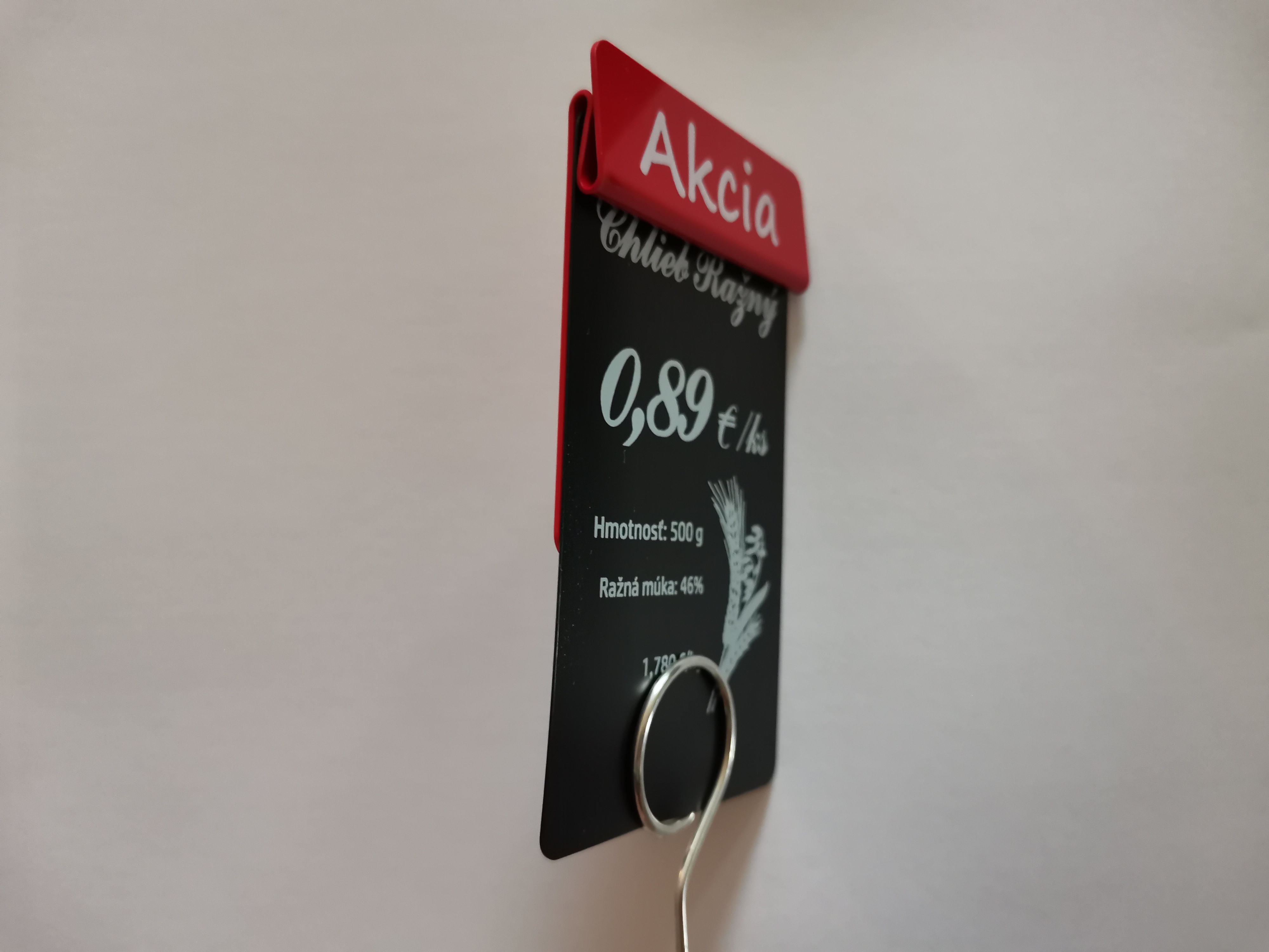 Pre zvýraznenie jednotlivých cenoviek ponúkame ohnuté etikety s popisom: