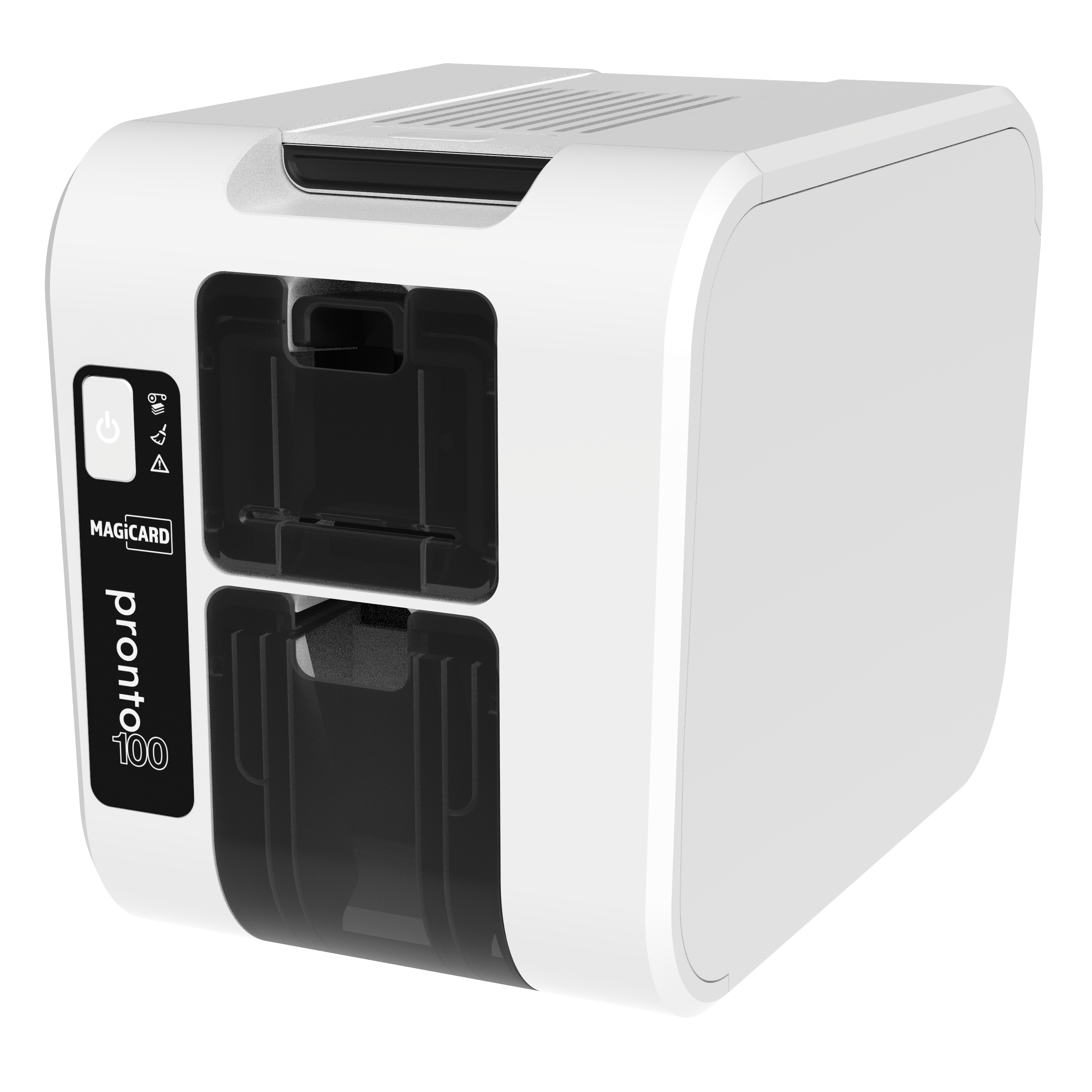 Pronto 100 je najmenšia, najrýchlejšia a najkvalitnejšia tlačiareň na karty vo svojej triede. Ide o zariadenie optimalizované pomocou vzdialenej správy používateľov Clix, ktoré plní environmentálne prísľuby spoločnosti Magicard. Tlačiareň Pronto 100 je ideálna na rýchlu tlač personalizovaných kariet, zľavových kariet a cenoviek. Má zásobník na 50 kariet a slot na ručné podávanie, takže karty je možné tlačiť jednotlivo alebo sériovo. Ponúka tlač až po okraj hrany a ostrý kvalitný obraz. Jej ľahká a kompaktná konštrukcia umožňuje jednoduchú dopravu na ktorékoľvek miesto. Hmotnosť tlačiarne je 2,9 kg.